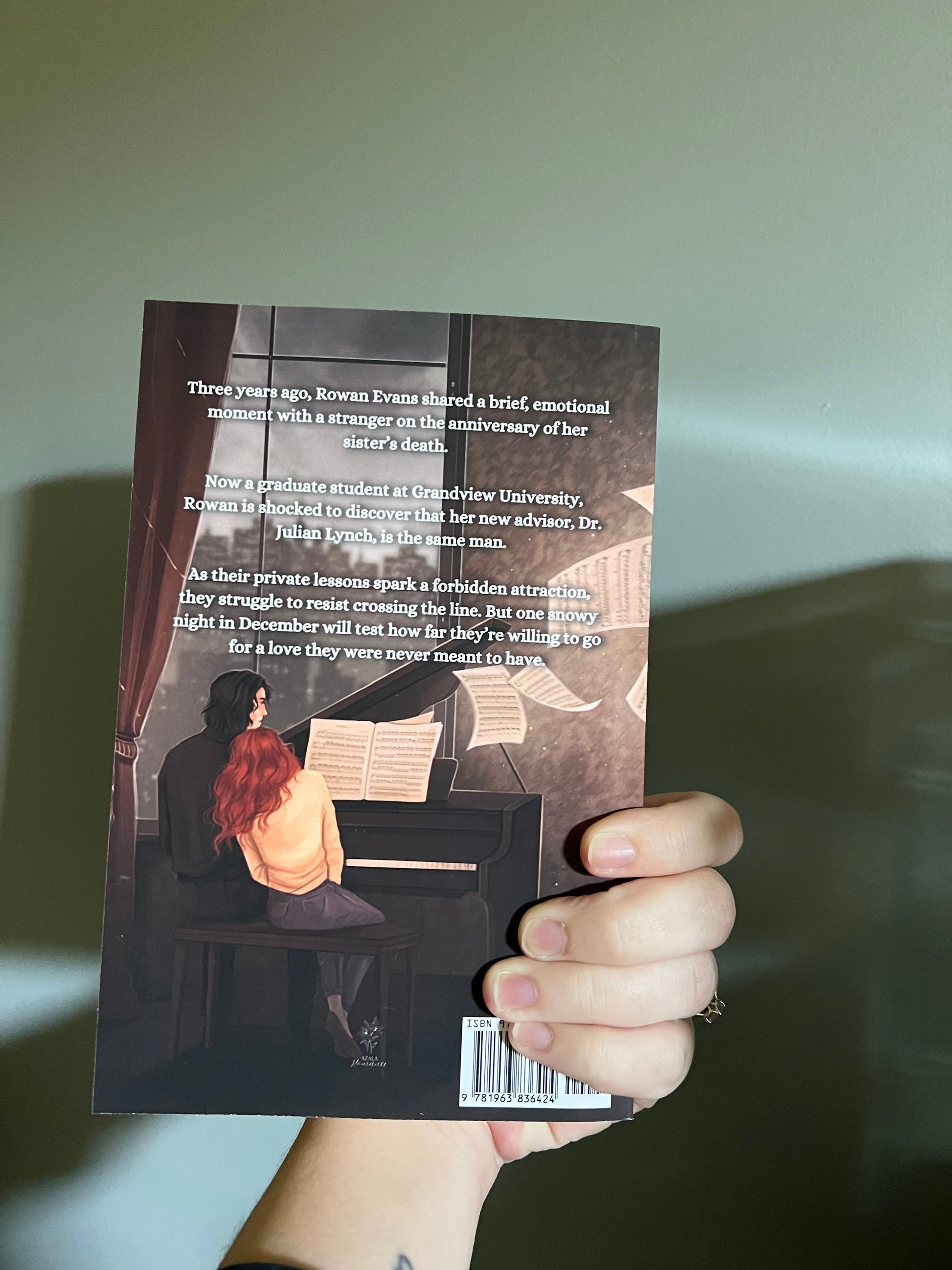On the anniversary of her sister’s death, a stranger offered Rowan Evans a tissue and watched the sunset with her until the stars appeared. Three years later, as Rowan begins the graduate program at Grandview University’s School of Music, all her plans are shaken when she finds out her advisor has fallen ill and has been hastily replaced by Dr. Julian Lynch, a thirty-four-year-old musical protégé hailing from Scotland. Rowan almost doesn’t recognize him as the man from that day she cried on the steps. But as the weeks drag on, she tries and fails to deny the attraction between them, resulting in a dangerous, charged tension during each of their private lessons.